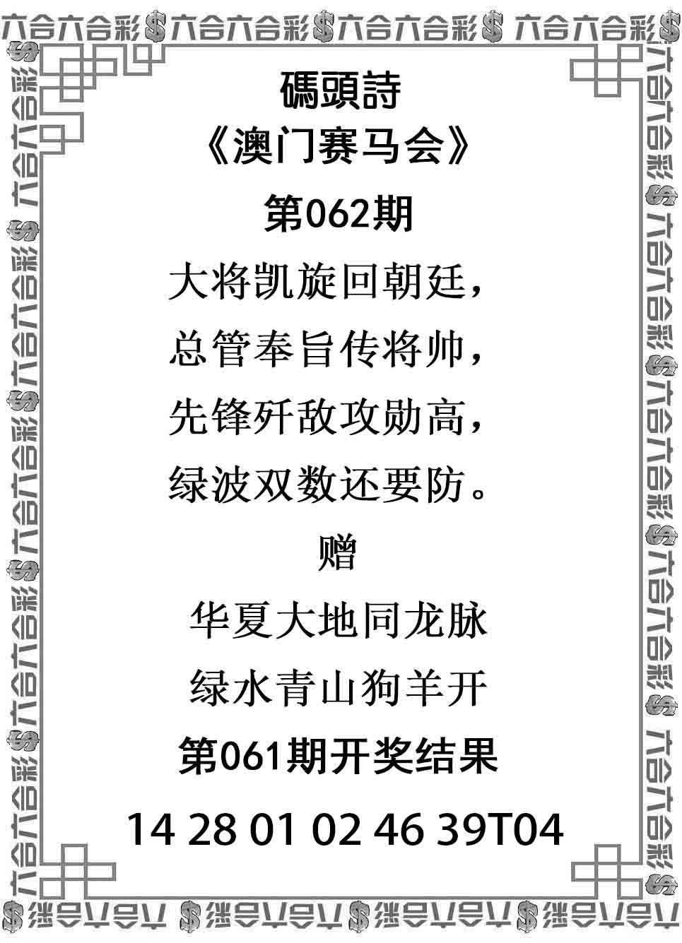 062期绝杀一波【绿波】开: