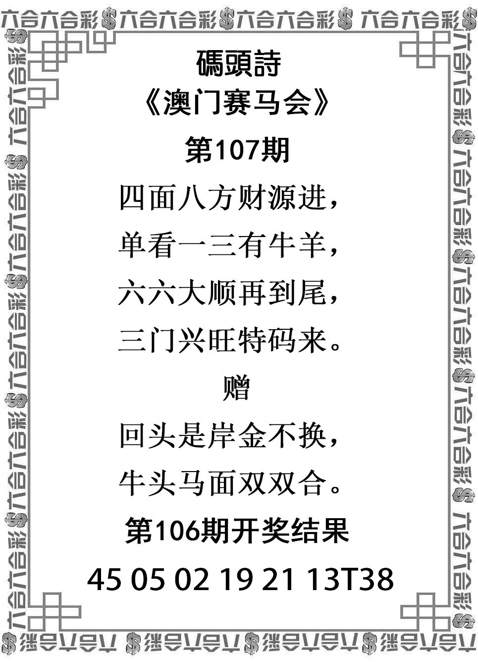 106期绝杀一头【1头】开:蛇38准